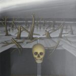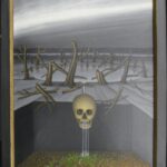 Ce tableau fait partie d’une série de quatre peintures à l’huile sur l’éphémère humain, c’est-à-dire la mort. Dans le tableau « La mort soutient la vie », il devient clair que chaque fin a un début et que chaque début a une fin. La peinture représente le cycle éternel de la vie. La peinture est centrée sur un crâne humain avec de l’eau vivifiante qui coule de sa bouche et se déverse dans un bassin carré avec des plantes attendant l’eau vivifiante. Un paysage dévasté avec des arbres morts peut être vu en arrière-plan du tableau. Le crâne est alimenté par un lac dans le tableau, qui donne l’eau aux plantes. La peinture a un cadre modèle sur mesure et est datée et signée sur le devant. Le tableau est titré, daté et signé au dos.